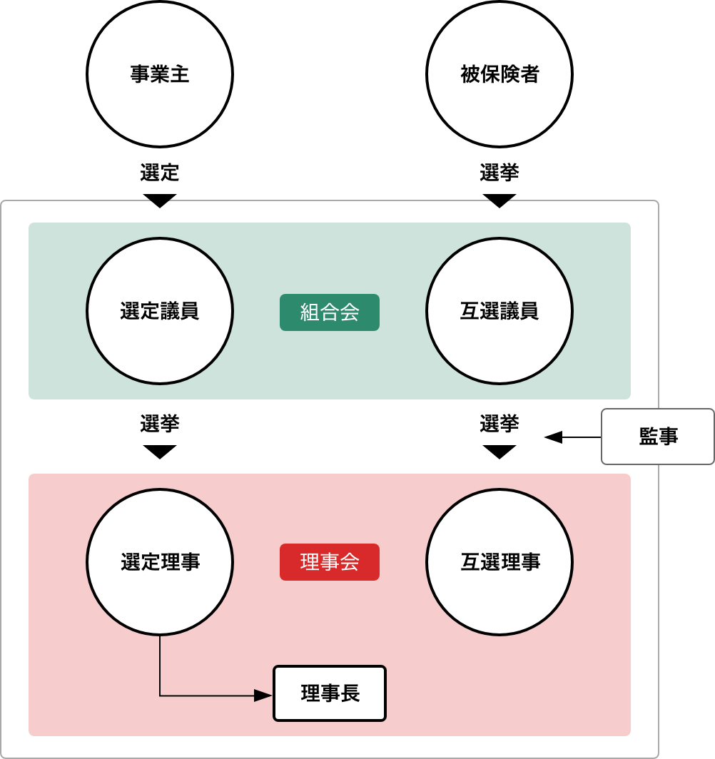 全理事の選挙により、選定理事のなかから選ばれます。理事長は健保組合の最高責任者です。